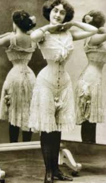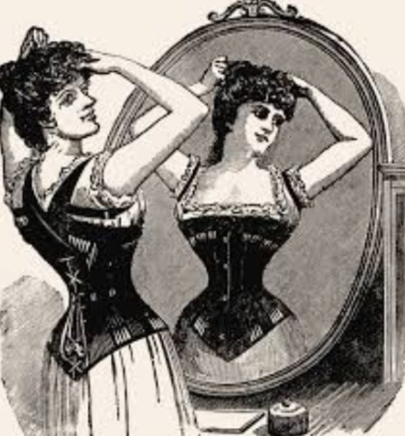 19世紀になると、編み上げ穴に金属アイレット(ハトメ)が普及して、丈夫に・強く締めやすくなるなど、つくりも変化します。こうした技術面の更新が、時代のシルエット要求と噛み合って「コルセットで形を作る」文化を後押ししました。