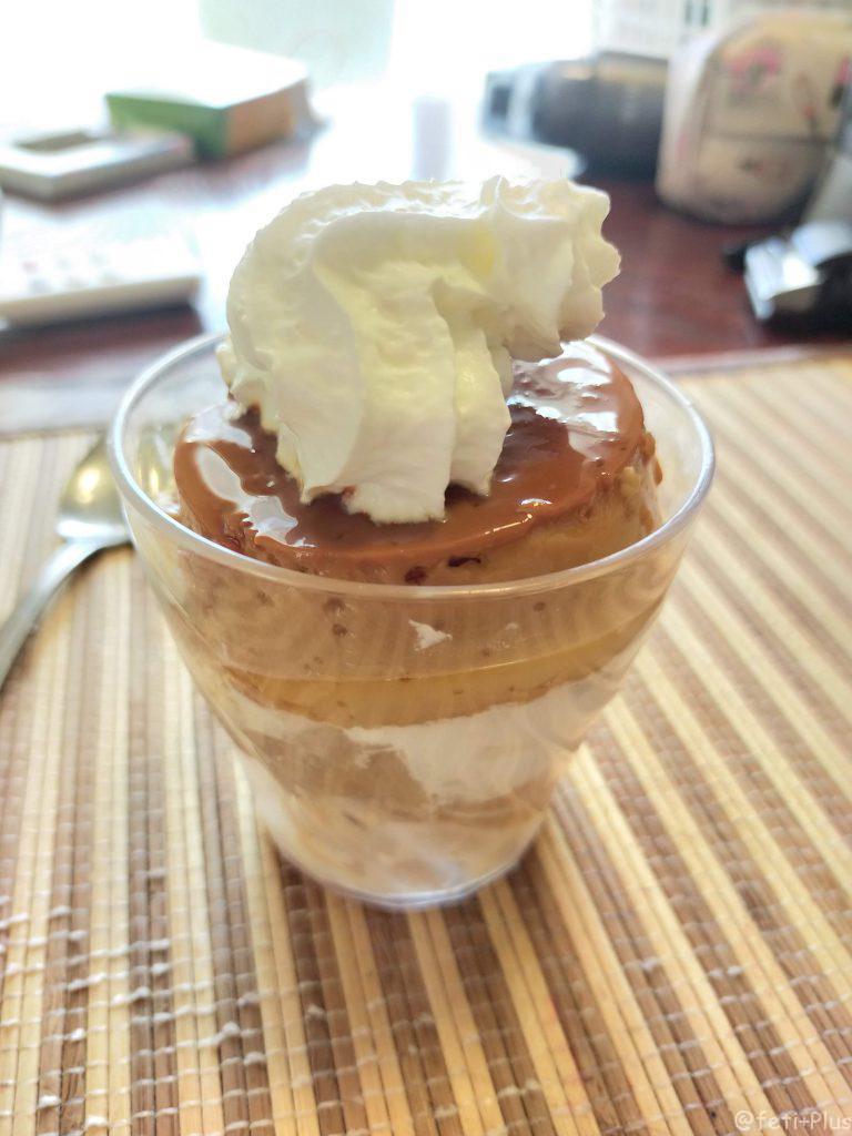 カラメルが固まる前にプリンの種を入れてしまうと、カラメルとプリンの種が混ざってしまいますが、カラメルの味の混じったプリンはそれはそれで美味しいです。