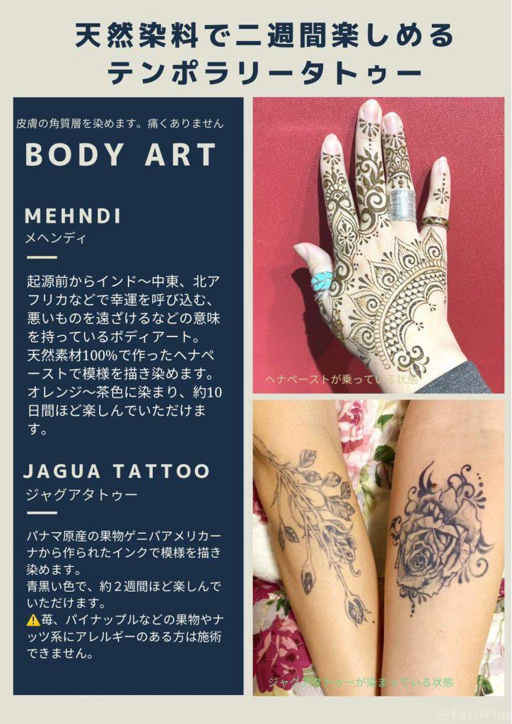 「メヘンディ」「ジャグアタトゥー」