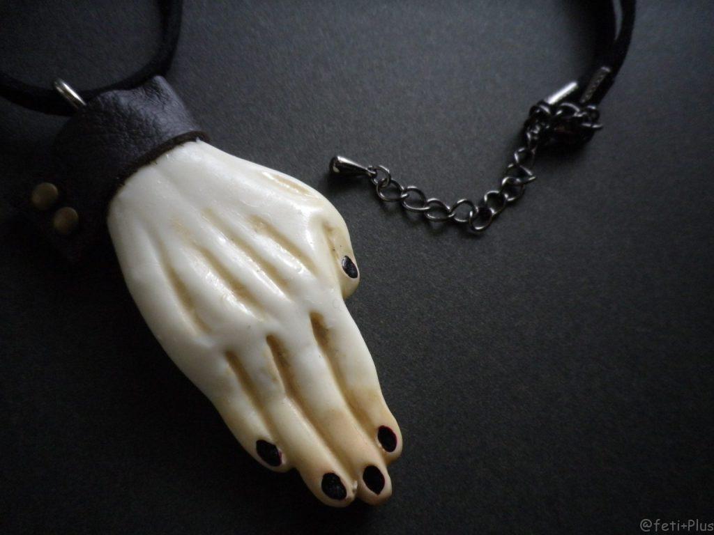 右手をはじめ人体モチーフが多めの、シュールでモノトーンなアクセサリー