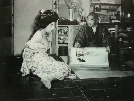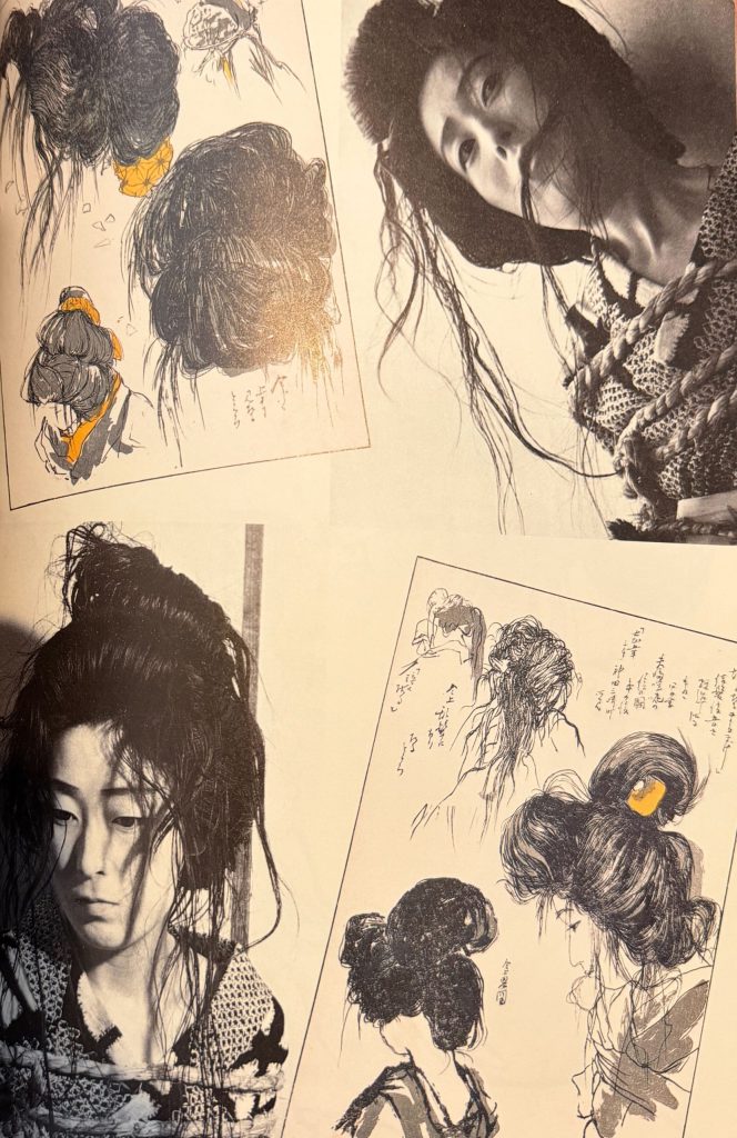 晴雨が絵の資料として 自ら写真撮影も行っていた ことは確認されており、これらの写真には縛られた女性の姿勢や表情が克明に写されている。写真を用いた観察は、晴雨作品の高い写実性と構図の精密さを支える根拠となっている。