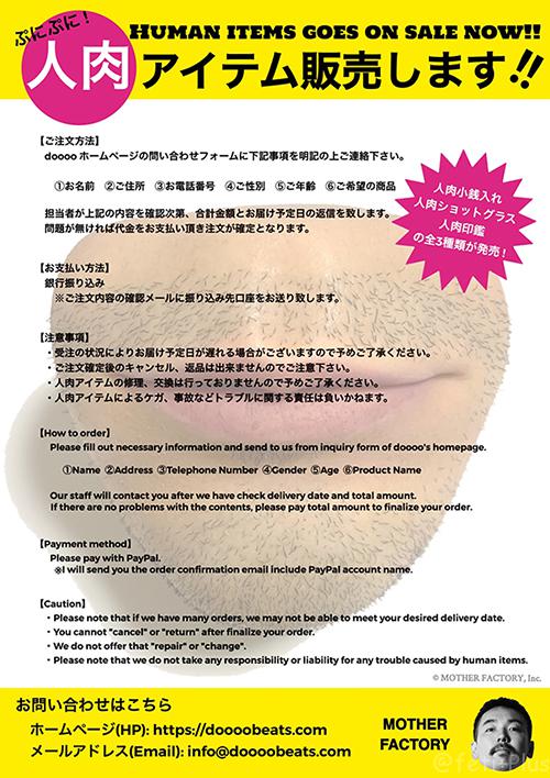 本展では、これまでdooooが制作した人肉アイテムが展示されるほか、人肉アイテムに関するグッズも発売されます。