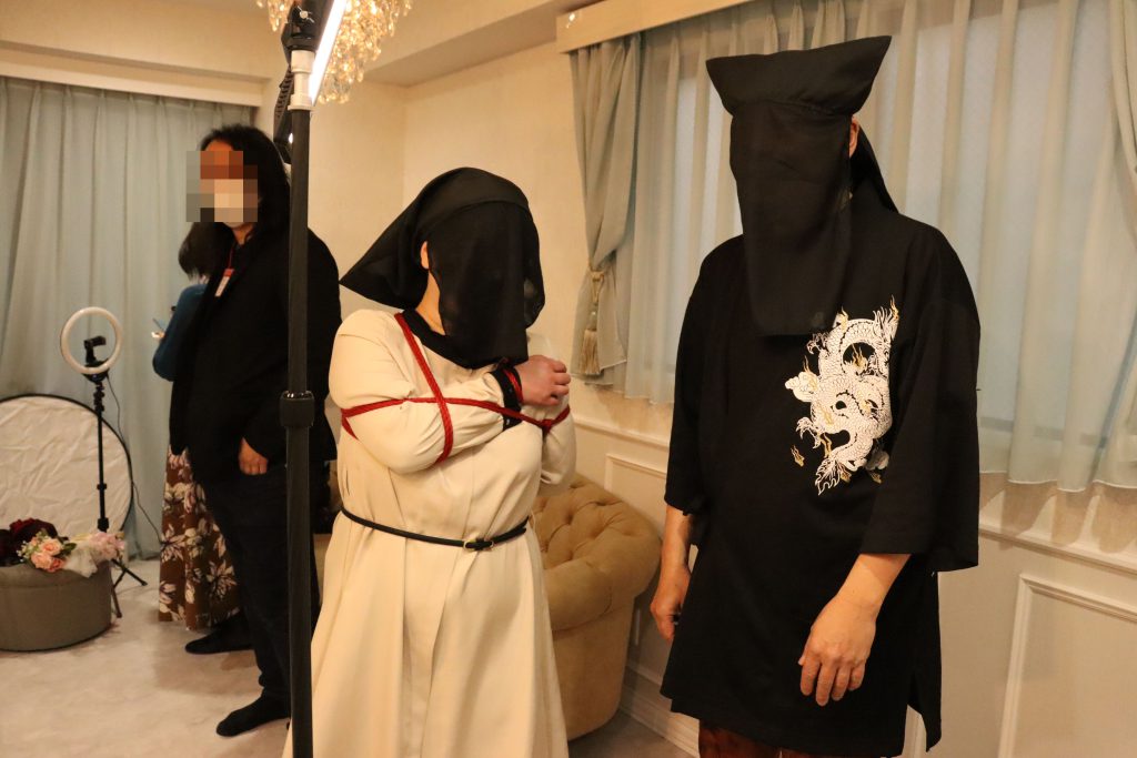 黒子の捕縛師に縛られる黒子。