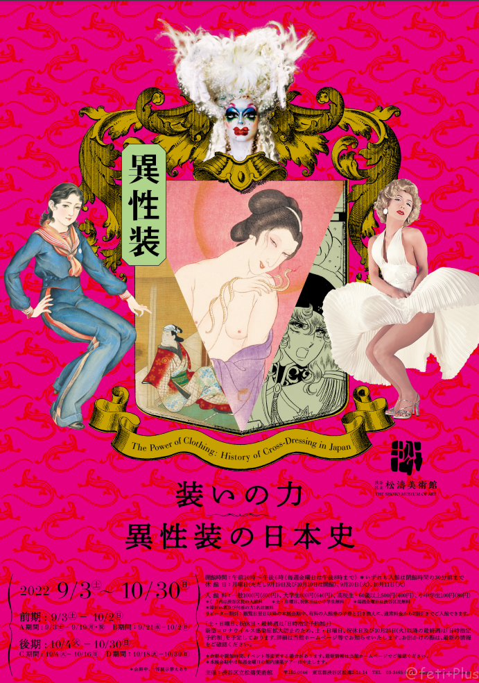 渋谷区立松涛美術館にて、「装いの力-異性装の日本史」開催中です。会期は前期・後期の入れ替え制。何度行っても楽しめる展示となってます♪