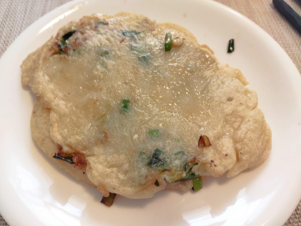 完成!こちらは皮と餡が一体化していて食べやすかったです。パーティーで食べる時はもっと大きく焼いて、あらかじめ切り分けて出すこともできます。