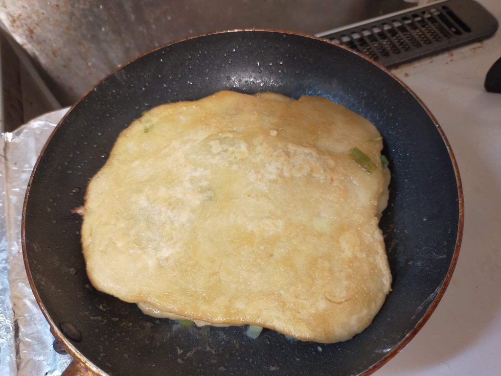 完成!この時は上の皮と下の皮がうまくくっついていないので、ハンバーガーみたいになってしまいました。皮のモチモチ感はあるけど、ちょっと食べにくい感じになってしまいました。