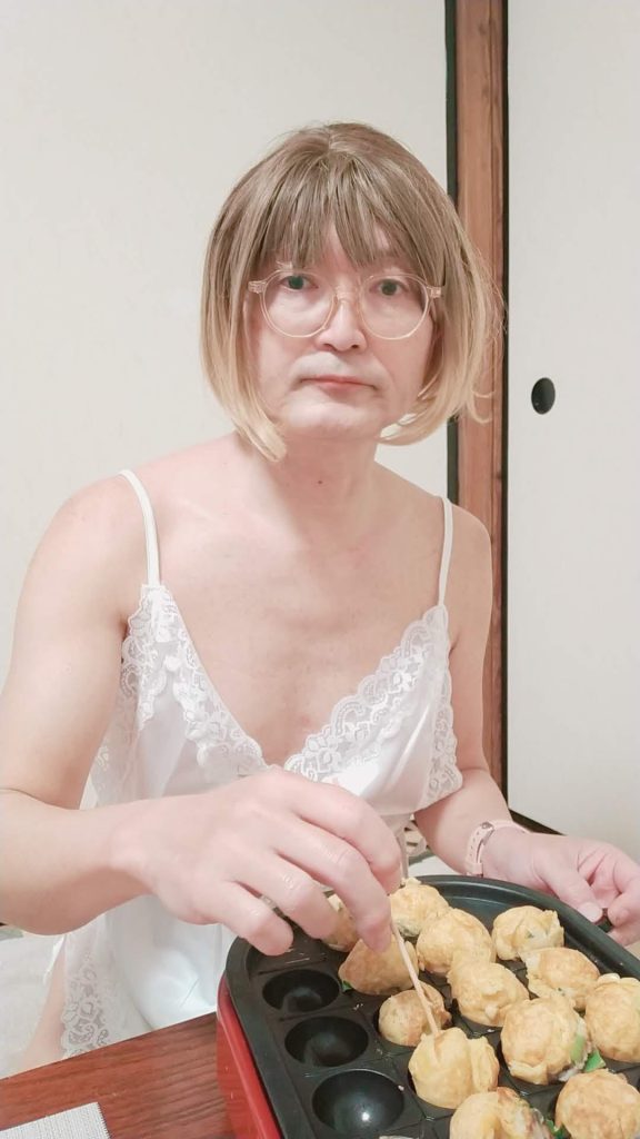 焼いているところ。お尻がちらっと見えていますが、相変わらずエロくないですねぇ。