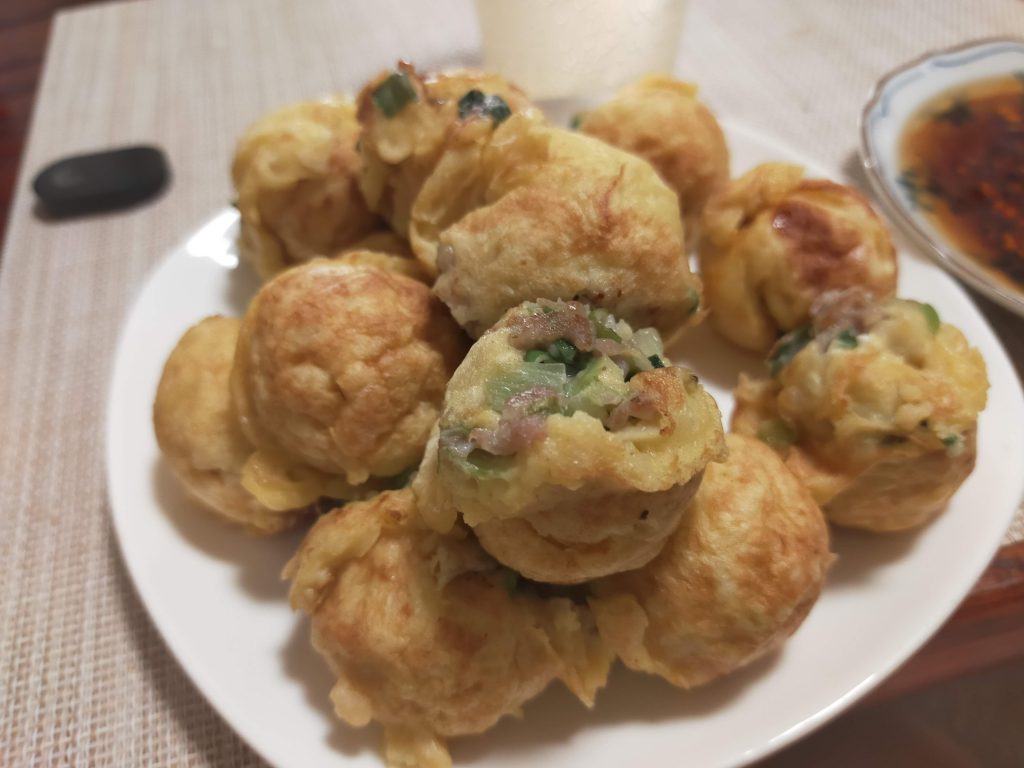 結論から言うと、これが一番美味しかったです。たこ焼き風に紅生姜を刻んで入れるのもアリだったかもしれません。ふわふわした皮の食感と餃子の餡の味が絶妙にマッチしてました。