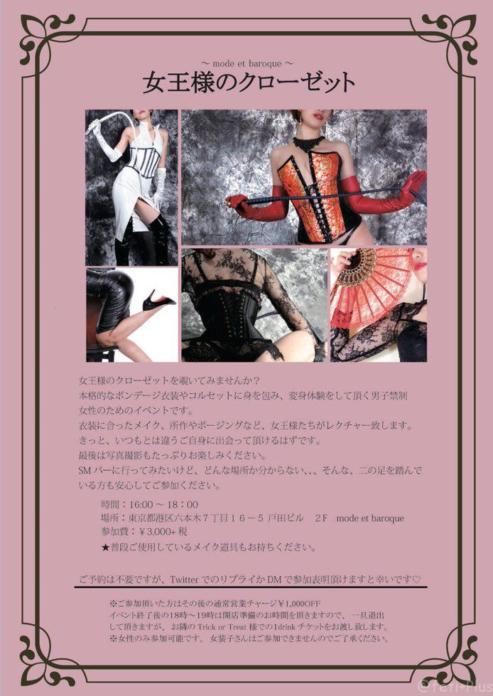 2022年11月26日(土)、六本木にあるmode et Baroque(モード エ バロック)にて、本格的なボンデージ衣装やコルセットを身に着け、女王様に変身できる体験型のイベントが開催されます。イベントは男子禁制ですので、男性の目を気にすることなく、思う存分女王様スタイルを堪能できますよ♪