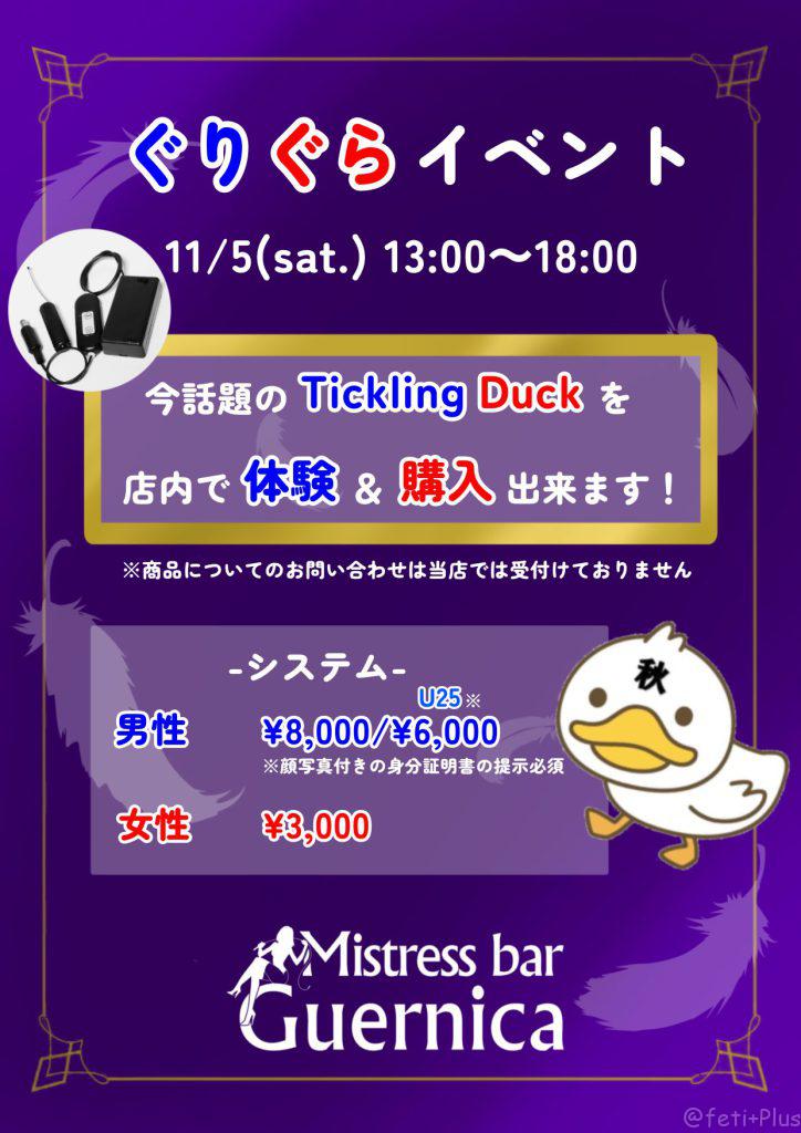 2022年11月5日(土)、池袋のMistressBar Guernicaさんで開催されるぐりぐらイベントに、最近ぐりぐら界隈で話題奮闘中の「くすぐり電磁棒」を開発・販売しているTicklingduckさんが行商にきます!