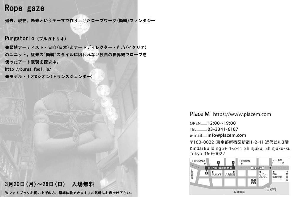 緊縛artist & Mistress として、東京を中心に、緊縛写真を作ったり、女装嗜好のある方向けのSM活動しているという日向可憐さん(@k_paradiso)が写真展『Rope gaze』を開催するそうです。